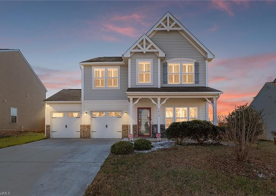 Beautifully maintained home in Reedy Fork Ranch offering a great floor plan and stylish finishes. The first floor features laminate flooring, a living room/dining room combination, and a granite kitchen with stainless steel appliances, recessed lighting, and drop lights over the center island. The adjacent family room includes crown molding and wainscoting, and the rear hall offers a built-in storage bench. Upstairs, the primary bedroom boasts a separate sitting room, walk-in closet, and ensuite bath with stall shower and soaking tub. Two additional bedrooms, a full bath, and a large loft ideal for an office complete the level. Enjoy the covered front porch, concrete patio, 2-car garage, and low HOA fee. Minutes to shopping, dining and the urban loop. Be in your new home for the holidays!