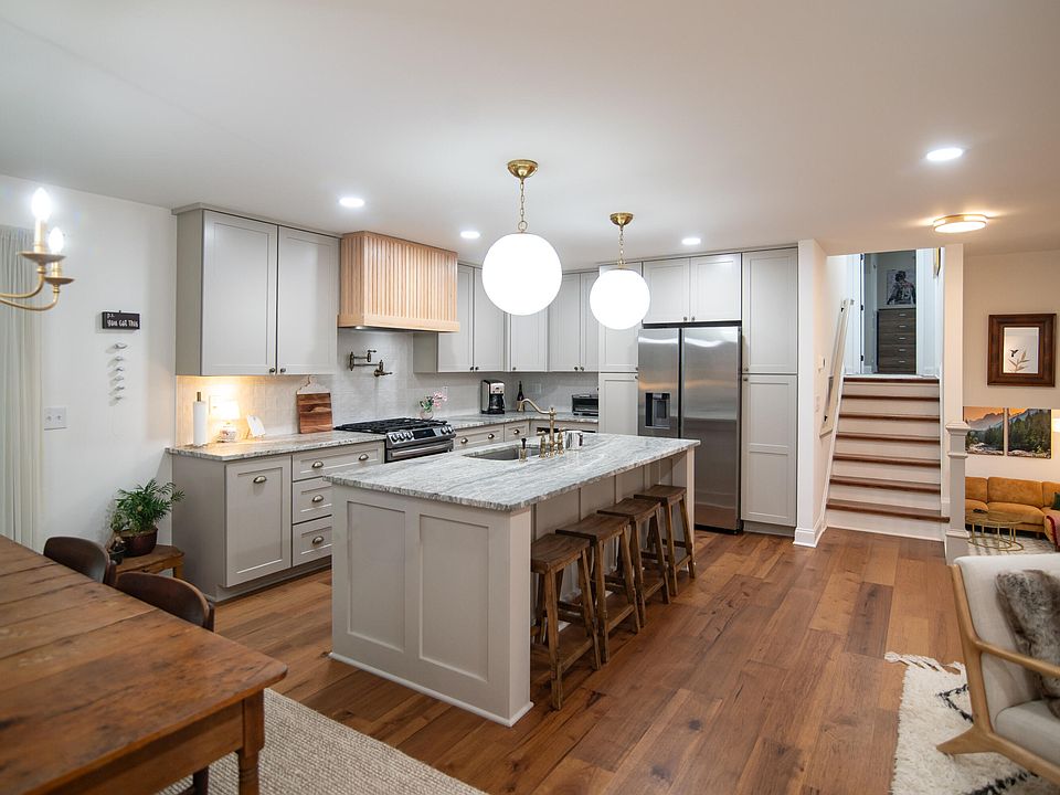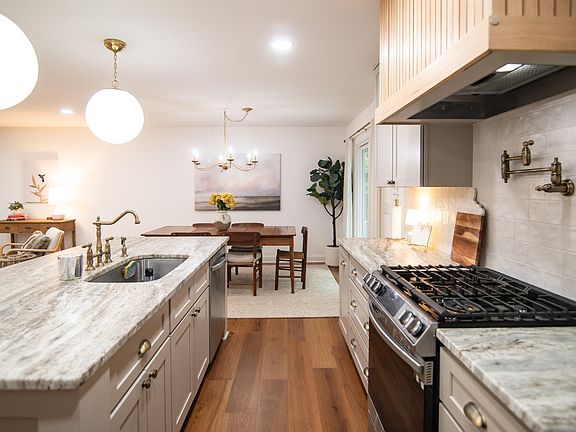 Welcome home to this beautifully updated, five bedroom, three bathroom home in the sought after Lakemont community! The gourmet kitchen truly is the heart of the home - where an oversized island with honed marble countertops is the perfect spot for hosting and the custom range hood, pot filler and updated stainless steel appliances make cooking a dream. The kitchen opens to a living area and dining room and a separate family room downstairs with a cozy fireplace is ideal for gathering. Sliding doors off the kitchen lead to the patio and large backyard, perfect for recreation and relaxation. The spacious primary bedroom has two walk in closets and a beautifully updated bathroom. 4 additional bedrooms allow flexibility for a gym or home office, and two more updated bathrooms provide plenty of space for all. The downstairs laundry room has a mudroom with lockers for organization and offers walk out access to the patio and backyard. Amazing location - just blocks to North Hills where shopping, dining and entertainment abound and easy access to both I-440, downtown, and nearby greenway trails. Lakemont is an established neighborhood with mature trees and no HOA dues or covenants. Don't miss this move-in ready gem!