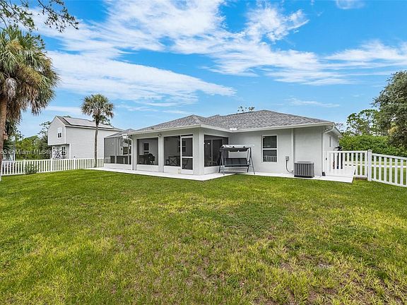 Beautiful, newer (built in 2021) custom home with lots of extras! Located on a cul-de-sac and backing up to a spacious greenbelt, you will love living here! The home features tile and luxury vinyl flooring throughout, upgraded granite countertops, cabinets with under cabinet lighting, generator and alarm system with cameras, and many other custom features. Outside there is a paved sidewalk all the way around the house, screened lanai and hot tub enclosure, expanded paved driveway for additional vehicles, 50-amp service for RV, white vinyl fenced backyard, and many more extras. (SELLERS PLAN TO LEAVE THE FOLLOWING ITEMS: TV'S IN BEDROOMS AND LIVING ROOM, DINING ROOM TABLE & CHAIRS, QUEEN BED INCLUDING FRAME AND HEADBOARD IN SPARE BEDROOM, LANAI PATIO SET AND 3 PERSON SWING IN THE BACKYARD)