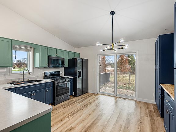 Better than new, this beautifully refreshed ranch half-duplex on a full unfinished basement features a terrific split floor plan designed to suit a wide range of lifestyles. The open layout boasts vaulted ceilings, abundant natural light, and spacious living areas enhanced by fresh paint, updated vinyl flooring, beautiful tile accents in the kitchen, a stylish farmer sink, and more. The primary suite includes a generously sized bedroom, an oversized bath, and a large walk-in closet (with a custom closet organizer), while the second bedroom is bright, spacious, and inviting. An oversized main-floor laundry room adds convenience and extra storage. Additional highlights include a 2.5-car attached garage, a private patio off the kitchen, and a basement already roughed in for a bathroom. Located right next to a new park and close to everything in an established neighborhood, this home is ready for you to make it your own!