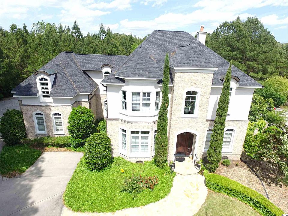 This home is a dream come true! Designed for entertaining and luxury living. The gourmet kitchen has custom cabinets, multiple pantries, commercial grade appliances that includes a Viking 6 burner gas cook top and beautiful stone countertops and floors. The family room has a soaring two-story ceiling, a wall of glass overlooking the pool, a gas fireplace, a custom Saddelmire iron clock, surround sound and wet bar with a built-in refrigerator. Off the foyer is the office and formal dining room or multi-function room featuring reclaimed antique oak floors. The office has a "secret" passage to the master suite which would also make it an ideal nursery. The master suite has two incredible custom closets, a water closet with both a toilet and a bidet, double sinks, a garden tub, and a huge two person shower. Thankfully there are two gas Rinnai tankless water heaters. It also has easy access out to the hot tub. There is a nice laundry room with good storage, a half bath and a sunny Carolina room. The beautiful curved staircase that greets you from the front door sweeps up to the library and three more bedrooms and baths. Out back is a large covered porch with a hot tub and a beautiful pool with water features. The homesite is a super private cul de sac lot with additional land beyond the pool that is ideal for gardening. Park in your side load 3 car garage. Plantation Point is on Myrtlewood golf course and is close to everything including Grand Strand Hospital, Broadway at the Beach, golf courses and a quick golf cart ride to the beach!!