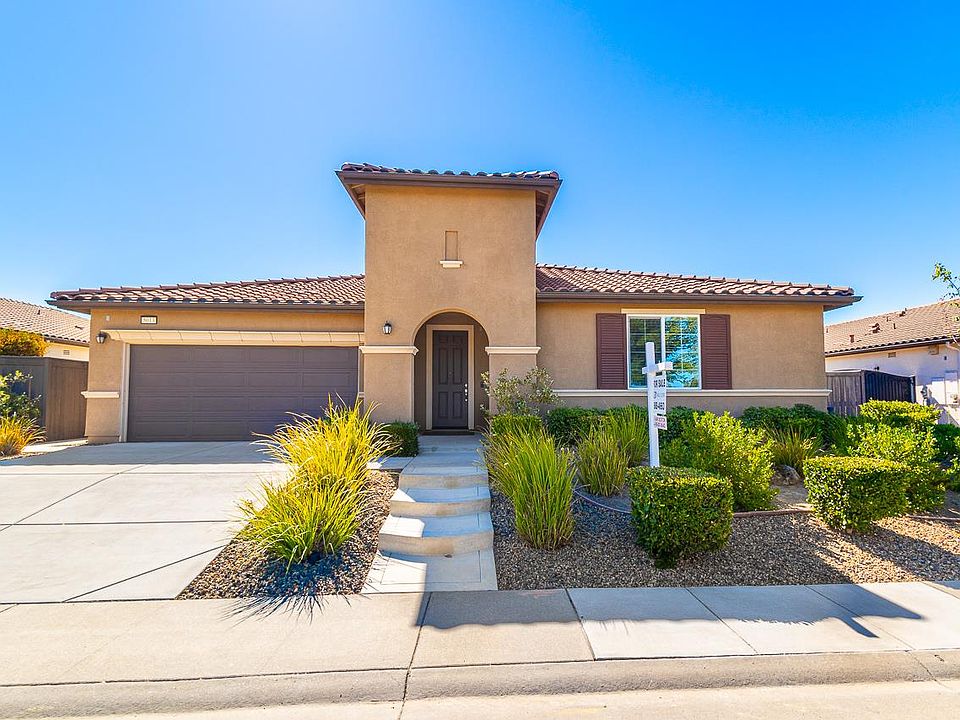Gorgeous single-story home across the street from Kavala Ranch Park, greenbelts and trails! Featuring 3 bedrooms plus office, 2.5 bathrooms, 3 car garage, great room, beautifully appointed kitchen with upgraded soft close cabinets, huge island, granite counters, stainless steel appliances and pantry, romantic primary suite and bath with double sinks, stall shower and walk-in closet, garage with epoxy floors and storage racks, nicely landscaped back yard with large patio, pergola, fruit trees and much more!