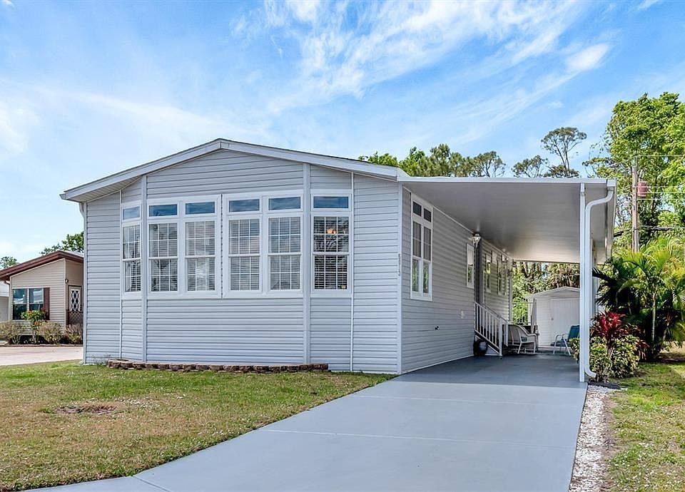 One or more photo(s) has been virtually staged. Welcome to Tri-par Estates, our active and vibrant 55+ community where neighbors become friends and every day feels like a vacation. If you are interested in open-concept living and a large backyard with a foliage view, this is the one! Conveniently located in the pet area , it is NOT in a flood zone. The gourmet kitchen features a large island with breakfast bar seating, upscale appliances, and loads of cupboard and counter space. Many nice touches, including high ceilings, fabulous double pane windows -living room front is 6 Bay windows, ceiling fans, and elegant 6" crown molding throughout. The primary bedroom features a large en-suite with a step-in shower, and the guest bathroom has a bathtub/shower combo. The outdoor shed adds the ease of having extra storage space. Enjoy the resort-style amenities, from the Olympic-sized heated pool and relaxing spa to the palapa tiki hut, which hosts music, dancing, and fun gatherings. Stay active with pickleball courts, shuffleboard, mini-putt, and a fully equipped gym. Indulge in creative pursuits with painting and sewing classes or casual entertainment such as ping pong, billiards, and various card games. You own your own land in this special parks and recreation district and pay no HOA fee directly to the association. The annual association amount of $1,584 is included in your property taxes. Golf cart-friendly community with optional storage for your R/V or boat. With Sarasota airport just minutes away, it's a perfect location for snowbirds or travelers. Sarasota - a town that feels like paradise; known for its world-class arts, museums, theaters, and alternative wellness offerings. The vibrant downtown, bustling marinas, and UTC shopping mall are all nearby. Best of all, you're just 20 minutes from the stunning beaches that have made Sarasota famous.