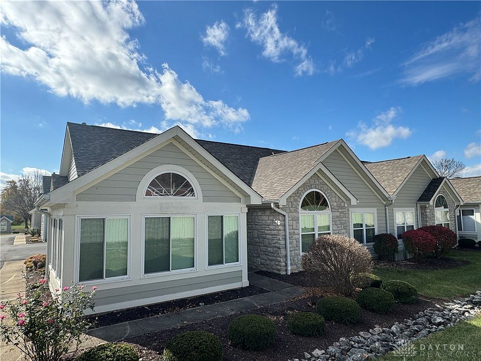 Original model unit for Hunters Glenn Condos! Exceptional home with cathedral living room with gas fireplace, plus all bedrooms have cathedral ceilings providing a great spacious feeling. Need more space, there's an adjoining sunroom off the LR with a bank of windows to bring in the sunshine. This unit is top notch with Champion replacement windows for energy savings, complete new interior painting thru out, new kitchen/ laundry and bathroom flooring, newer carpeting also, 6 panel interior doors, all windows have adjustable blinds, newer water heater, new bathroom Kohler toilets and newer dimensional roofing. Large primary bedroom with double sink vanity, standing shower and walkin closet. Full kitchen has updated cabinetry, newer appliances, pantry, adjacent laundry room off kitchen has wall cabinets with direct garage access, pull-down stairs in garage to floored attic storage. HOA fee includes clubhouse, heated swimming pool, exercise room, outside maintenance, hazard insurance, lawn care and lawnscape, snow removal, walking trails, water/sewer and trash. Hunters Glenn is a great community offering a lifestyle of carefree living and is conveniently located, just a short drive to everything. See this unit today, it's a pleasure to see.