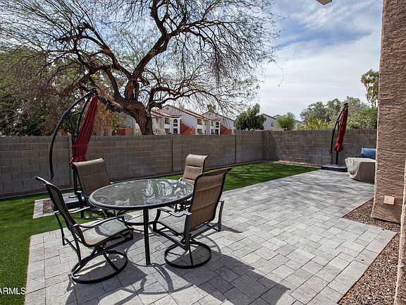 Desirable location in Ahwatukee, corner lot, 2 bedroom, 2 bath one story home with no homes behind you. Newly renovated in 2021, tile floors, open floor plan, tub & primary shower with new tile surrounds. All new landscaping in 2021 with artificial turf, gravel & large patios in both the front & back yard. Enough space for large gatherings. Kitchen has new sink, garbage disposal & faucet in 2024. New kitchen window is a custom garden window, stops glare & outside noise, has a shelf for more plants, gets the morning sunlight. Newly installed refrigerator, stove microwave in 2022. New water heater in 2022. All newly installed in 2024, energy efficient windows & sliding glass door, Low-tinted glass that stops the glare and reduces noise outside. New bathroom faucet & light in primary bath.