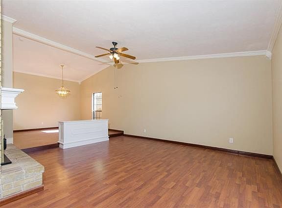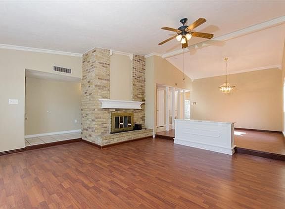 Recently updated one story home with wood laminate floors, fresh designer paint in neutral colors throughout; crown molding; gorgeous den with vaulted ceilings and wood burning fireplace! Galley kitchen with lots of cabinet and countertop space and backyard view. Spacious back yard with large concrete patio - great for entertaining!