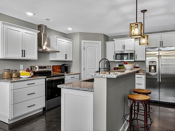 Great new construction home ready for you to move right in! Main-floor living one-level home with open concept eat-in kitchen with island bar and pantry, dining room with all the windows, and living room with raised ceiling line and access door to the patio. Cement floors throughout are easy to maintain and change up with rugs or overlays. Huge primary is ensuite with a large shower, double sinks, a linen closet, and a nice walk-in closet with built-in shelving. Two more bedrooms flank another full bath with tub and offer the opportunity to use them as you like, an office, or workout space? Find the laundry conveniently in the middle of the home with tons of storage space and extra closets. Ready for you to make it your own, all on a great lot in the highly sought-after Sterling Chase neighborhood!