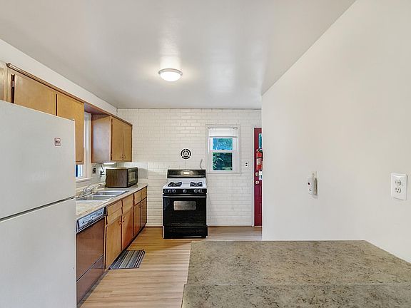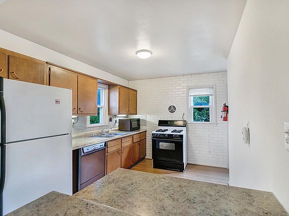 - Kitchen includes gas range, refrigerator, dishwasher, garbage disposal, and microwave