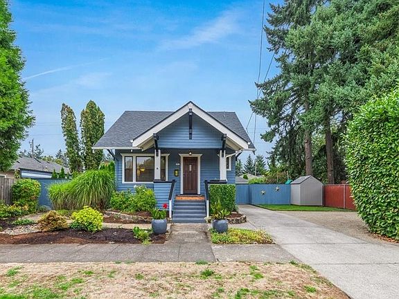 Built in 1915, this quintessential Portland Craftsman has been lovingly restored with modern conveniences while preserving the timeless millwork and craftsmanship of the era. Situated in the heart of Woodstock on a rare lot-and-a-half, the property offers an expansive yard and ample off-street parking — whether you need space for an RV or envision building an ADU. Inside, a welcoming foyer opens to light-filled living spaces where refinished fir floors shine. The kitchen has been thoughtfully updated with quartz countertops and stainless steel appliances. Two main-level bedrooms share a refreshed full bath, while the upstairs is a private primary suite complete with a full bath, a spacious walk-in closet and a cozy nook — perfect for a home office or nursery. The basement provides flexible space for storage, laundry, or additional living use. Outside, enjoy the fully fenced yard with garden box, patio ideal for gatherings, lush lawn, a play area, and a shed. Restored in 2012 with updated plumbing, electrical, and the reimagined upstairs suite. 2025 upgrades include a brand-new tear-off roof, interior paint, and exterior paint that highlights the period-specific design details. Period details include: original built-ins with butterfly brass hinges, vintage doorknobs, picture frame molding, decorative corbels, and tongue-and-groove covered porches — preserving the authenticity of this Craftsman classic. All of this in one of Portland’s most vibrant neighborhoods: just two blocks from Woodstock shops, eateries and food cart pod, New Seasons Market, and coffee spots. Plus three blocks to Woodstock Elementary and Park with its playground, off-leash dog area, trails and ball fields. Truly a rare combination of history with modern updates, on a lot-and-a-half of outdoor space. [Home Energy Score = 4. HES Report at https://rpt.greenbuildingregistry.com/hes/OR10241525]
