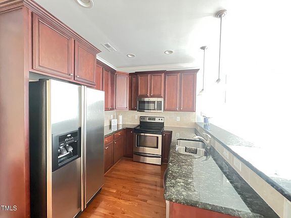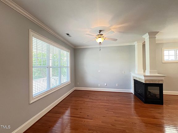 Charming 2-Story Charleston-Style Home in Apex! Welcome to this beautifully updated 3-bedroom, 2.5-bath home, featuring a large covered front porch that overlooks a quiet common area and sits on a peaceful quasi-cul-de-sac. Enjoy the convenience of a detached 2-car rear-entry garage with a covered walkway leading to a private courtyard. Interior highlights include: 9' smooth ceilings on both floors; Elegant crown molding and wrought iron stair railing; A cozy back staircase; Oversized pantry and built-in bookshelves; Spacious family room with fireplace; Bright and airy with lots of natural light; Brand new HVAC system. The primary suite offers a large walk-in closet, dual vanities, a garden tub, and a separate shower. Located in a highly sought-after Apex neighborhood with top-rated schools, close to I-540, and within walking distance to shopping and dining.