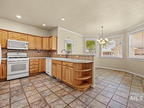 This beautiful home has a BRAND NEW ROOF! Say goodbye to cookie-cutter living! This 4 bed/3 bath/plus office home in Turnberry Cross, Meridian offers charm, space, and a welcoming and quiet neighborhood filled with mature trees and established landscaping. Perfect for multi-generational living and guests, it features a main floor master suite with a jetted tub, walk-in shower, dual vanities, and private w/c, as well as an upstairs private bedroom/ensuite with skylights for sunlit days and starry nights. Enjoy a spacious kitchen with gas range, pantry, and sunny dining area, plus an office with inside/outside entrances. Outside, relax under the covered patio surrounded by shade trees, or take a short walk to Seasons Park. With the newly installed roof, updated HVAC system, 3-car garage, garden shed, and abundant storage, this home is move-in ready!