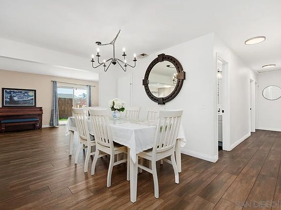 Charming Single-Story Home Adjacent to Bonsall West Elementary Welcome to 5014 El Mirlo Dr — a spacious 4-bedroom, 2-bath single-story home offering 1,728 sq ft of comfortable living space. The open floor plan connects the kitchen, dining, and living areas seamlessly, creating a warm and functional layout for everyday living and entertaining. Inside, you’ll find wood-look tile and laminate flooring throughout, stainless-steel appliances, and generous counter space with a breakfast bar. The primary suite and secondary bedrooms provide plenty of room for flexibility — ideal for a home office, guest space, or growing household needs. The backyard features turf and a large covered patio for easy maintenance and outdoor enjoyment, while the front yard offers great potential for personalized landscaping. Additional highlights include leased solar panels to help offset energy costs and an attached two-car garage. Conveniently located next to award-winning Bonsall West Elementary School, offering excellent access to the local community and nearby amenities. Single-story homes with this much space, comfort, and potential are hard to find — come see what makes this property a great place to call home.