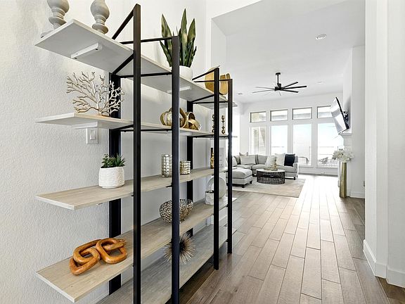 Step into this luxurious 1 story Perry Home, consisting of 12 ft. ceilings and wood-like tile flooring. This 4 bedroom, 3.5 bath home includes an office space that may be used as a game room or play room. The split bedroom layout allows for owner's privacy. The primary suite includes the bedroom with a 13 foot ceiling, a wall of windows, garden tub, separate shower, and two walk-in closets. This home includes a 3-car tandem garage and a covered backyard patio. Enjoy Pomona's resort-style amenities; pool, playground, boat dock, scenic walking trails, fish camp, pickle ball court, and fitness center. With access to Hwy 288 nearby, residents can enjoy Pearland's shopping and dining; Downtown Houston; and events at NRG Stadium. This master planned community is zoned for Alvin ISD. Schedule your private tour today!