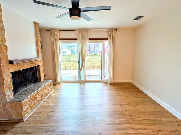 En-suite bathroomGarbage disposalLarge fenced-in backyardCozy brick fireplaceButcher block countertopsLarge sliding glass doorsStainless steel appliances