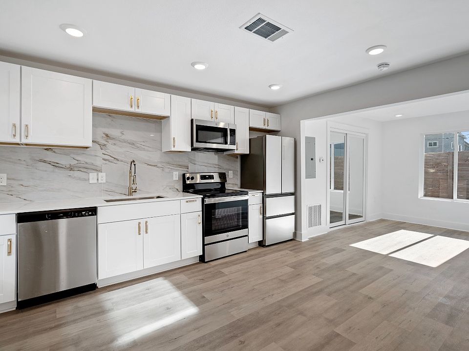 Sleek finishesContemporary fixturesUpdated appliancesBright neutral tonesUpgraded flooringModern cabinetryOpen layout