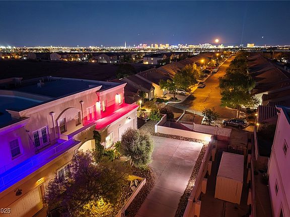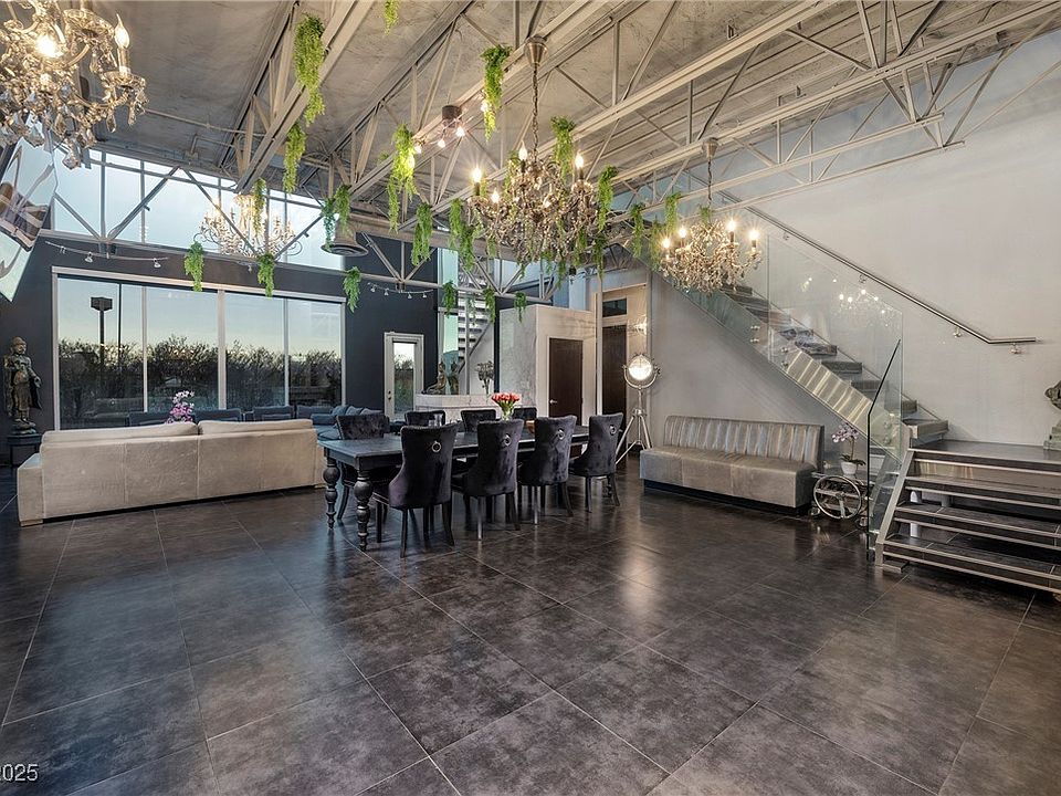 The Broadway Loft w/Strip, City & Mountain Views. Sensational 24’Foot ceilings w/views from floor-to-ceiling windows. One of the largest lofts & lot in Grand Canyon Villas, a Private Summerlin 26-home community w/No HOA! Room to park 10+Cars & RV parking in the extended driveway. 3364 SF, 3 Bed, 2 Bath, 2-10 Car & RV+,.23 Acres| Striking Viking Chef’s Dream Kitchen,Granite Counters & Backsplash. Open Liv & Din w/Marble 3-Way FP. Media Rm w/Automatic Wall. Dramatic stairs to massive loft suite w/Spa Bath:Sep Tub,Marble Shower,Dual Vanities & Walk-in Closet. Office Retreat w/Priv Strip View Balcony. Glass railings allow for max views & complete the modern loft aesthetic. Private Outdoor yard w/Chic Built-in Fire lounge. Security System w/Surveillance Cameras, Auto Shades. Remodeled & upgraded=Urban sophistication meets timeless design-perfect for modern city lifestyle. Mins to Dining,Shops. NO HOA. NV is a State WITHOUT Indiv,Corp,Estate, Inheritance Taxes offering savings for Residents.