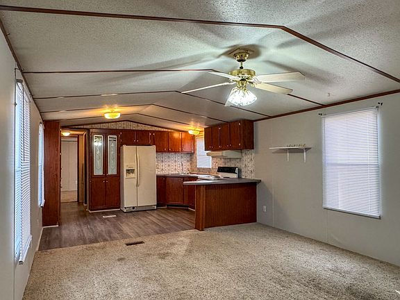 ALL UTILITIES included! 2 Bedroom, 2 Bathroom Mobile Home - freshly painted mobile home offers a welcoming and open floor plan with carpet and vinyl flooring throughout. The kitchen includes an electric stove and refrigerator that is open to the spacious living room. One bedroom and a full bathroom are located on one end of the home, while the primary bedroom features an attached full bathroom on the opposite end, offering added privacy. The primary bedroom features a walk in closet. Washer and dryer are conveniently located within the home and are for convenience use only. Central A/C and heat, all-electric. Pets are permitted on a case by case basis with non-refundable fee of $250 per pet. Best of all, the rent includes a Resident Benefits Package and ALL UTILITIES: Electric, Water, Sewer, Trash, and Lawn Care! Ask for more details.