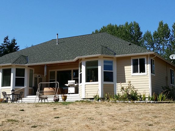 Architecture special designed rambler house. Large 3 Bed/2 bath. Immaculate condition with 3 car RV garage. Beautiful marble entry with amazing woodwork & arched doorway. Vaulted Ceiling. Pantry and wine cellar with special glass doors. 2 French doors to deck from kitchen and master bed. Have AC system 6 cars Pull barn with shop. 2.5 acres with X-Mas trees, garden. Minutes from the Puget sound Water. Master bath has 5 Pc tiled Bath w/soaking tub, shower.