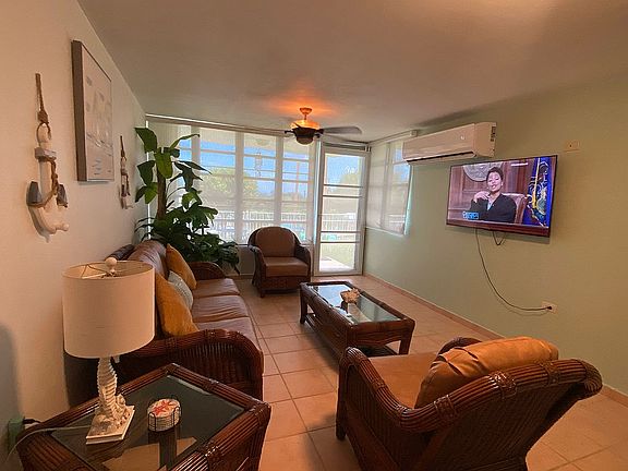 Well maintained 3 bedroom, 2 bath garden apartment with private patio and laundry room only 5mins away (walking) to Punta Tuna Beach in Maunabo, Puerto Rico. Fully equipped and furnished. All bedrooms and living rooms have AC units and room darkening window shades. Complex has (3) pools, (2) outdoor gazebos, playground, tennis and basketball courts and fitness center. It has (2) private parking spaces. 24/7 Security. It is currently on Airbnb making 2k/monthly. HOA $172/month.