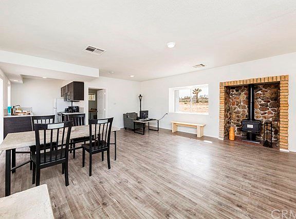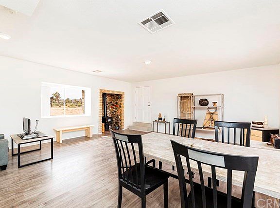 Architectural gem on acreage! Fantastic older home, visually stunning property--check the brick work, the angled roof line, stone decor. Interior done with style and flair, features inserted wood stove, sleek modern look though-out, beautiful in its simplicity. Comes with concrete floor studio rooms, both sizable, the photos say it all. The usable square footage is much more than the living area on the public records. White foam roof and HVAC keep this property cool at a low cost. Sits on 1.25 acres, conveniently located not far from paved roads, and not far from Pipes Canyon, New Horizons, Flamingo Heights, Pioneertown, and downtown Yucca Valley, and Joshua Tree National Park about 20 min drive. Plenty of potential with this interesting, solid property. Concrete table and many furnishings included. A MUST SEE and priced to move, so don't hesitate. BACK UP OFFERS ONLY!