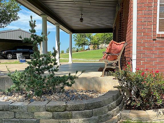 Brick 3 bedroom, 2 upstairs and master bedroom downstairs, 2-1/2 baths. Front porch to enjoy the view of acreage and creek. Lots of storage and cabinets. Detached oversized 2 car garage with shop area carport. Country living with approximately 8 acres on paved road with view of Spaniard Creek.
