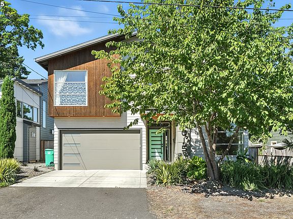From soaring vaulted ceilings to walls of windows, this stunning modern home delivers show-stopping style, comfort, and space—just minutes from Alberta. The open layout is flooded with natural light, anchored by a gas fireplace framed with custom, built-in wood shelving in the living room. The chef’s kitchen features recessed ceilings, quartz countertops, custom cabinetry, an oversized island, stainless steel Kitchen Aid appliances, under-cabinet lighting, built-in microwave, and an impressive walk-in pantry. The dining area opens seamlessly to a covered patio and fully fenced backyard, creating the perfect setting for year-round entertaining and effortless indoor-outdoor living. On the main level, a bedroom with French doors offers flexibility for a home office or guest bedroom. Upstairs, the expansive primary suite is a private oasis with floor to ceiling windows, a spa-like bathroom with a floating vanity, tub, walk-in shower, dual sinks, and an expansive walk-in closet. The three additional upstairs bedrooms offer walk in closets, high ceilings - plus, enjoy the convenience of the upstairs laundry room complete with an extra sink and storage. Additional highlights include an oversized two-car garage with ample storage and tankless water heater. Minutes from shopping and restaurants on Alberta, this impeccably maintained home is truly better than new. Come see it for yourself! [Home Energy Score = 7. HES Report at https://rpt.greenbuildingregistry.com/hes/OR10241277]