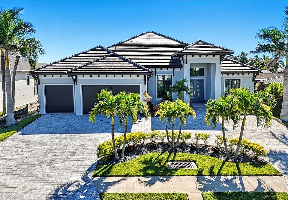 The large, multi-car garage and expansive driveway offer plenty of parking, while the stunning pavered driveway adds a touch of sophistication to the home’s entrance. Outside, enjoy the beauty of the Florida lifestyle with a new composite dock featuring a 20,000 lb lift & private backyard, perfect for relaxing or entertaining guests.