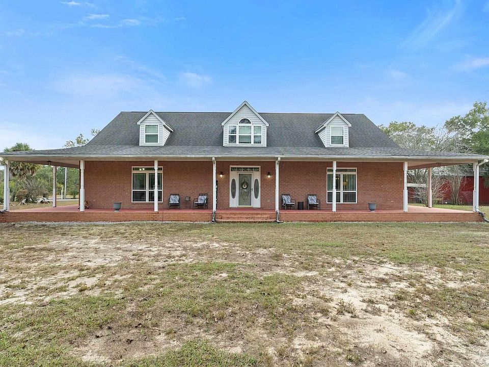 This is a RARE and UNIQUE 3-Bedroom, 3-Bathroom Brick home on 30 ACRES in the middle of Milton. Enjoy the feel of peaceful country living just minutes from town. The property features an ENCLOSED SALTWATER POOL, a FISHING POND, a CREEK, a massive 3,000 SQ. FT. metal building with power, and another 2400 sq. ft. garage/workshop with power. Additional highlights of this home are a wrap around porch, wood burning fireplace, Chef's Kitchen, large laundry room, and a bathroom that opens to the pool area. The attic offers room to expand or add additional living space if desired. For travelers, there is an RV hookup with a dedicated dump station. Located at the end of a dead-end road, this property offers true privacy while still being close to schools, shopping, and local amenities. Enjoy the benefits of in-town convenience with the feel of country living — a rare find!
