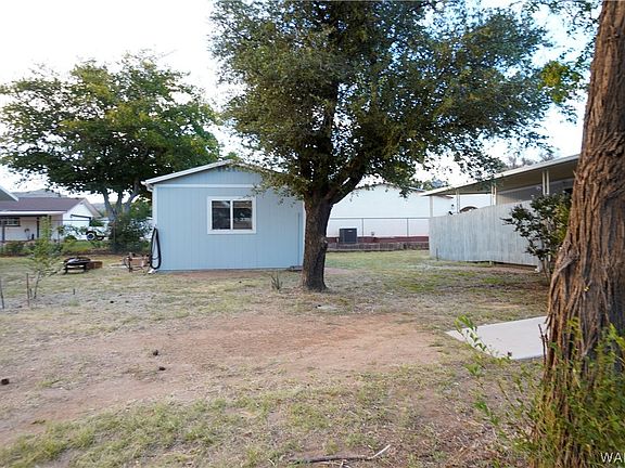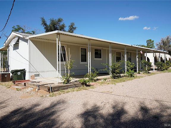 Come check out this lovely property in Kingman Camelback. There are wonderful mountain views from the backyard.  It features a half acre with mature landscaping, fully fenced with drive thru gates on each side.  Large detached garage with electric (220), storage room with electric (110). Water to both the garage and storage room.  The home is 3 bedroom with master on the south side and the other two rooms on the north side. The master bathroom has a large walk in shower. The laundry is inside. It has a built in hutch and custom cabinets. There is a handicap ramp to the home from the back with a lovely porch. Front and back porches and there is central heat & a/c.  You will fall in love with this yard and the great views. Lots of parking and room for a pool, swing set, trampoline, garden or all! Pumpkins have been planted for fall.