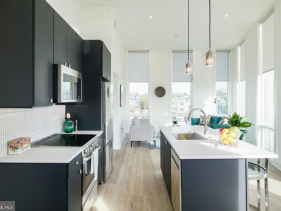 Situated in Philadelphia's Kingsessing neighborhood, The Meadowline has everything one could need inside and out. The building features (2) elevators, a state-of-the-art fitness center with Peloton bikes, Latch keyless entry, bike storage, dedicated mailroom, and an artfully designed communal lounge with observation deck. This 1 bed 1 bath unit has been tastefully designed throughout. Kitchens feature stainless steel GE Haier appliances, matte black cabinetry, Mitzi pendants, and pure white quartz countertops. CB2 kitchen hardware is accented by the Delta fixtures and the pure white quartz countertops are accented with beautiful Ann Sacks backsplash. Bathrooms feature Ann Sacks tile, floating vanities, mirrors with built-in lighting and Delta fixtures. Each bedroom is adorned with an artistic light fixture. The Meadowline also features an extensive Apiary designed outdoor experience with dog park, picnic areas, community garden plots, elevated landscaping and more! To enhance the overall design of the building, unique finishes have been selected such as Corten metal, and Vermont slate. With 24 hour surveillance, dedicated secure parking spaces, and a walk score of 84, do not miss your chance to move in! Parking available on a first-come, first-serve basis. $125 for Uncovered spots; $150 for covered Tenant responsible for electric and $45 flat water fee/mo. No Gas Photos of similar unit