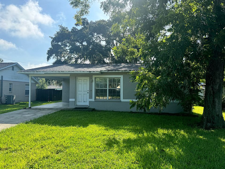 This inviting 3 bedroom 1 bathroom home offers 1056 square feet of thoughtfully designed living space. Step inside to find brand-new wood-look tile flooring throughout and fresh interior paint, giving the home a clean and contemporary feel. The master bedroom features a generous walk-in closet, while the additional two bedrooms are nicely sized, perfect for family, guests, or a home office. Enjoy the convenience of in-house laundry facilities and the comfort of an attached carport, providing easy access and extra protection for your vehicle. The large backyard offers ample space for outdoor activities, gardening, or simply relaxing in your private oasis. Renter is responsible for water & electric. Owner will pay for lawncare.