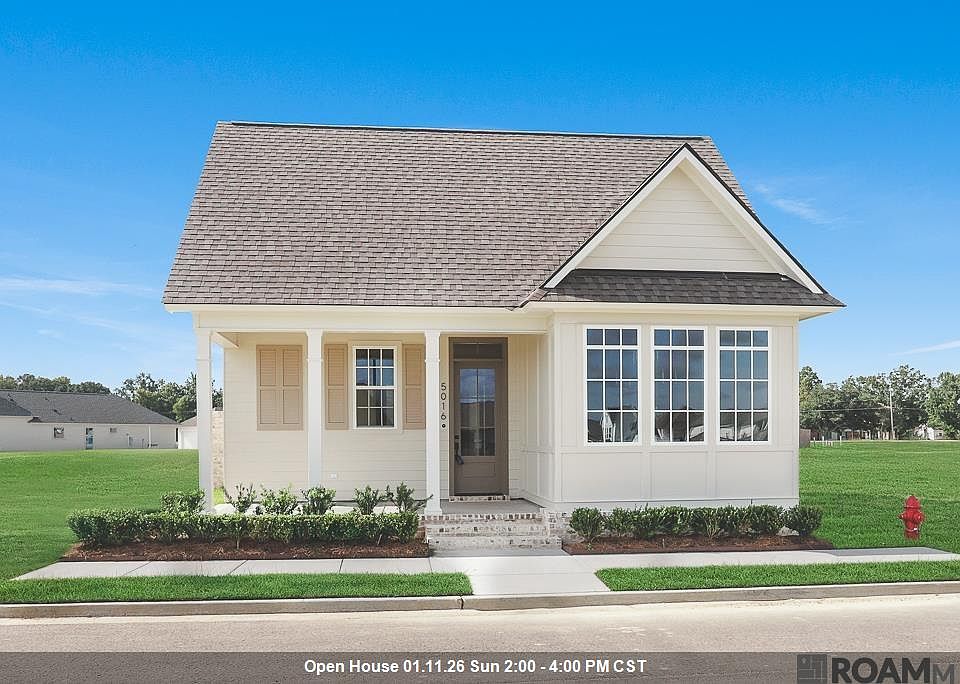 Aucoin Homes offers this beautifully designed cottage-style home blending warmth, functionality, and luxury. Stunning wood floors run throughout the main living areas and all bedrooms.The gourmet kitchen features quartz countertops, a 36-inch gas cooktop, custom hood vent, and soft-close cabinets and drawers. Enjoy storage on both sides of the large island, accented by a statement panel wall in the dining room. A floor outlet in the living room adds convenience. Other thoughtful design features includes a modern fireplace, a laundry room with folding space and extra storage, a linen closet, and a custom mudroom with built-in cubbies. Gold finishes elevate the look with upgraded cabinet hardware, plumbing fixtures, lighting packages, and gold-framed mirrors throughout. The spacious primary suite includes a 6-foot garden tub, a custom-tiled shower with shampoo shelves, frameless glass surround on tiled shower, and water closet. Relax on the covered patio with coffered ceiling, can lighting, ceiling fan, outdoor kitchen and brick privacy wall! You will love the oversized garage featuring 10-foot ceilings and plenty of storage potential. Enjoy the benefit of professional decorator services included with every home, ensuring a beautifully cohesive and stylish finish from top to bottom.