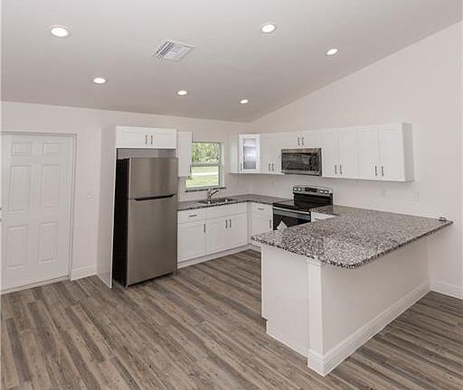 NEW CONSTRUCTION! High Quality, Affordable, Single Family Home by SunSky Homes. This beautiful four (4) bedroom, two (2) full bathroom home has over 1,500 square feet of maximum living space! All upgrades are included. Granite Counter tops with an attached eat-in Breakfast Bar. Designer Tiled Bathrooms. Full Laundry Room with hookups for FULL SIZE washer and dryer. Pantry. Large Queen and King Sized Bedrooms with Walk-in Closets. Stainless Steel Appliance Package. Custom Built, Soft Close Cabinets with plenty of storage space. Vaulted Ceilings. Hurricane Impact Windows. Tankless Water Heater. City Water. Impact Doors. Land Included with paved driveway!