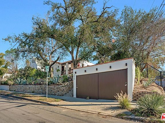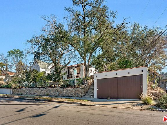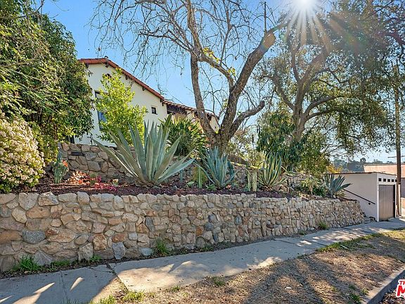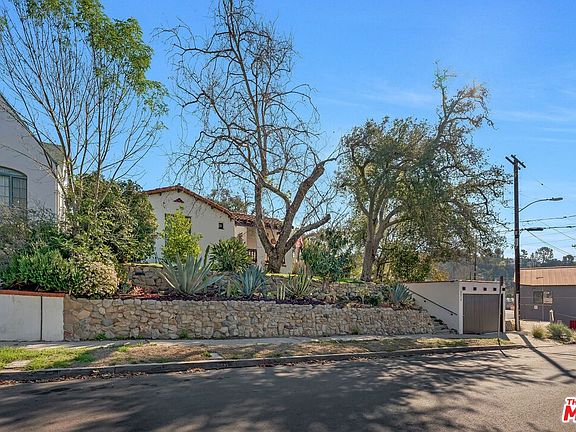 This Spanish-style custom build sits on a large private corner lot just over 8,200 sq ft. in the heart of Eagle Rock. Characterized by its curved archways, beamed ceilings, and picture windows, this property perfectly captures the warmth of the abundant natural light it receives. The home was originally a 3 bedroom 1 bath and was converted to a 2-bedroom 1 bath to accentuate the primary bedroom. The most recent remodel of the primary includes a walk-in closet to accommodate any wardrobe. A 4-year warranty protects the freshly redone exterior. The large backyard is adorned with well-kept trees and vegetation such as the Sycamore tree which is a centerpiece in the lot. Perfect for outdoor entertaining, the backyard boasts a flat cement section, cut-outs for creative design, stadium lighting, and plenty of room to build or design a custom outdoor experience with large mature trees, an herb garden planter, and a large private wall. The detached garage, can be finished as a studio, gym, or office. This home has been meticulously maintained in the most perfect location with great walkability to Eagle Rocks finest restaurants and shoppes.