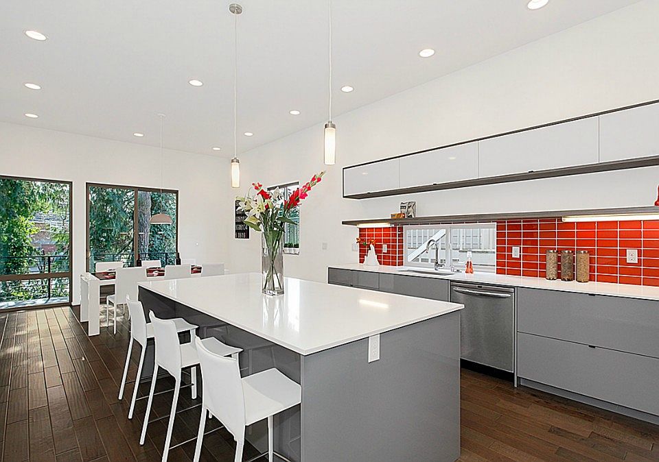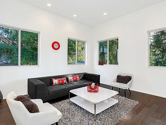 Stunning modern new 4 BD home located in West Seattles North Admiral neighborhood with rooftop deck overlooking the Sound and Olympics. Open main floor plan is centered around a sleek upscale island kitchen, see-thru FP, dining/living areas, deck, bdrm/home office and half bath. Upstairs has a fun reading nook/flex space plus 2 more bdrms, bath, access to rooftop deck and your fabulous master retreat with walk-in closet and custom tiled monsoon shower/bath. Ample storage and a 2-car garage too!