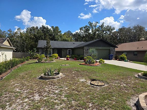 MOVE IN READY -- 3 BEDROOM PLUS OFFICE,K 2 BATH, 2 CAR GARAGE LOCATED ON EXTRA LARGE CONSERVATION LOT. SPACIOUS OPEN GREAT ROOM PLAN WITH A FIREPLACE AND CATHEDRAL CEILILNGS. EXTRA LARGE KITCHEN WITH EAT IN SPACE AND STAINLESS STEEL APPLIANCES. LARGE MASTER BEDROOM WITH WALK IN CLOSET. MASTER BATH WITH LARGE STEP IN SHOWER UPGRADE NEW. SPLIT BEDROOM PLAN. THE HOME HAS A SCREENED LANAI OVERLOOKING THE CONSERVATION AREA PAINTED FLOOR UPGRADE. THE FENCED BACKYARD HAS A DOUBLE WIDE GATE AND PARKING PAD FOR A BOAT OR RV. THERE ARE ON CDD FEES AND THE HOA FEE IS ONLY $90 PER YEAR. This home has been added many Fruit plants ( Avacato trees, Lemon trees, Orange tree, Passion tree, Chinese Plum trees, Mango tree, and Much More). Garage indoor floors were professionally painted, shine and very well easy to clean. Sprinkler system in working condition. All Appliances were replaced one year either the exception of the dishwasher, it’s in working condition was not needed to change less than three years of use. Owner sale: reach out to : patricia68@yahoo.com or text/call 813-610-0586 for viewing appointment is required.
