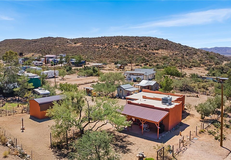 A Must-See Gem in Historic Chloride, Arizona! Charming and full of character, this beautifully maintained Santa Fe-style home is nestled in the heart of the historic mining town of Chloride. Set on a spacious 0.33-acre corner lot, this move-in-ready property showcases true pride of ownership and offers a peaceful, small-town lifestyle with all the modern comforts. The fully fenced lot provides dual access from two roads, offering privacy and convenience. Outdoor enthusiasts and travelers will love the full RV hookups, including a 30-amp plug, while the 12x20 carport (enclosed on three sides) provides covered parking or workshop space. Gardeners will appreciate the dedicated potting shed, plus there are two additional storage sheds for all your tools and gear. Enjoy Chloride s mild climate from either of the two covered patios, ideal for relaxing mornings or quiet evenings under the stars. Inside, the home features a cozy 1-bedroom, 1-bath layout with a versatile den that can easily function as a second bedroom or office. The bedroom, den, and kitchen all offer direct access to the patios adding a seamless indoor-outdoor living experience. The kitchen is well-appointed with plenty of cabinetry and opens to a comfortable dining area, making meal prep and entertaining a breeze. Other highlights include stained concrete and tile flooring, built-in cabinets in the laundry area, and thoughtful updates like new exterior paint, a metal roof over the east patio, re-coated main roof, and a new kitchen sink and faucets. Whether you re looking for a full-time residence, a peaceful desert retreat, or a charming weekend getaway, this unique property checks all the boxes. Don t miss your chance to own a piece of Arizona history with modern-day comforts! Come and explore our beautiful Arizona desert, beautiful sunrises, sunsets and starry night skies. Don't wait, opportunity is knocking, call a Realtor and schedule your personal tour of the beautiful home today!