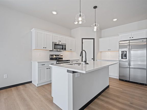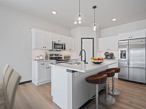 IMMEDIATE POSSESSION! Country living located just 13 miles south of Iowa City and 8 miles North of Kalona. New zero lot with 2 bedrooms on the main level and 2 bedrooms in the lower level. Zero step entry from garage into house. White cabinets and hard surface countertops throughout. Kitchen features tile backsplash, LED under cabinet lighting, island with seating, pantry, and stainless GE appliances with electric range but is plumbed for gas. Attractive floor to ceiling stone on the gas fireplace. Dining area leads out to the covered deck with composite decking and steps to the backyard. Primary bedroom has a trey ceiling, walk-in closet, and private bathroom. The lower level has plenty of natural light with the daylight windows and includes a large family room, bedrooms 3 and 4, full bathroom, and storage space. HOA fee amount is yet to be determined and will cover the common well maintenance, subdivision road maintenance, and common mailbox building maintenance. Finished photos have been virtually staged.