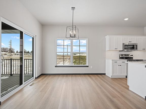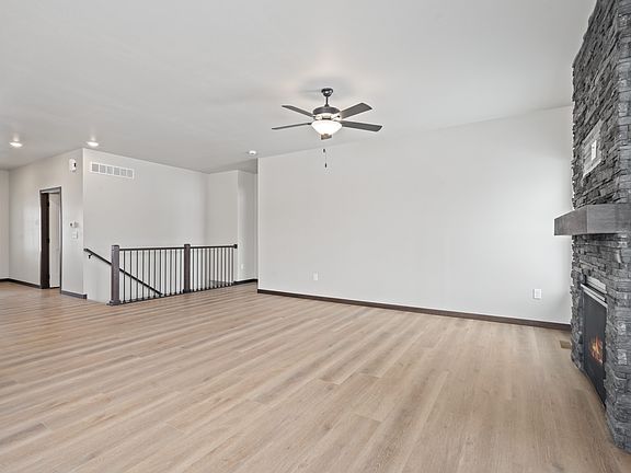 IMMEDIATE POSSESSION! Country living located just 13 miles south of Iowa City and 8 miles North of Kalona. New zero lot with 2 bedrooms on the main level and 2 bedrooms in the lower level. Zero step entry from garage into house. White cabinets and hard surface countertops throughout. Kitchen features tile backsplash, LED under cabinet lighting, island with seating, pantry, and stainless GE appliances with electric range but is plumbed for gas. Attractive floor to ceiling stone on the gas fireplace. Dining area leads out to the covered deck with composite decking and steps to the backyard. Primary bedroom has a trey ceiling, walk-in closet, and private bathroom. The lower level has plenty of natural light with the daylight windows and includes a large family room, bedrooms 3 and 4, full bathroom, and storage space.