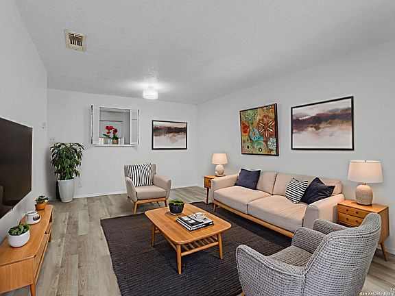 Single story townhome in a gated community centrally located near 410 and Callaghan Rd. The home has 3 bedrooms, 2 bathrooms, with patio and a short distance from the neighborhood pool. The primary bedroom has a walk-in closet with shower and larger single vanity. The home has been recently painted, new light fixtures and new flooring installed, no carpet! The complex allows 2 pets, STR, and you have to option of fencing in your back patio area where a mature tree is located.