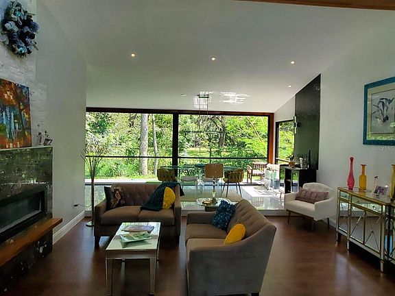 Double sided fireplaceElectric fireplaceNew roof and guttersCorner carouselShaded deckFamily roomBursting with natural light