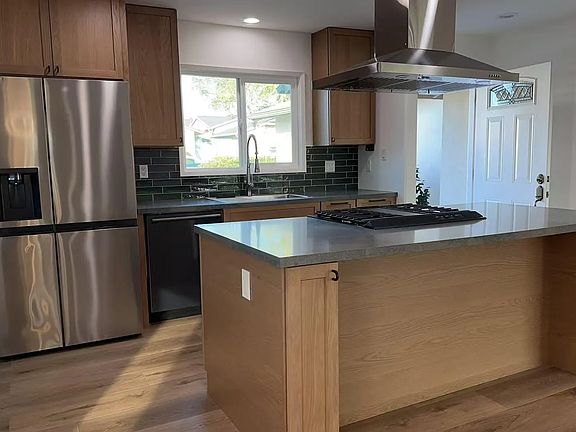 Welcome to this fully remodeled, turnkey 3 bedrooms, 2 bathrooms home ideally nestled right on the border of the highly desirable Clairemont Mesa and Bay Ho neighborhoods. Offering 1,530 sq ft of thoughtfully designed living space, this home provides more room than many in the area, featuring a spacious living room centered around a charming, oversized fireplace—perfect for gathering and entertaining.The home has been extensively remodeled throughout, featuring dual-paned windows, luxury vinyl flooring, quartz countertops, a complete set of solid wood kitchen cabinets, and stainless steel appliances. The improvements continue outside, featuring drought-tolerant landscaping in the front and a low-maintenance backyard complete with high-end Belgard pavers, a built-in fireplace, and a covered patio. The yard is also pre-plumbed for a hot tub, offering even more potential for outdoor enjoyment. Located just minutes from Mission Bay, the coastal canyons, La Jolla Shores / Pacific Beach, UTC Mall, local hiking and biking trails, shopping, dining, and easy freeway access, this home offers the best of central San Diego living.