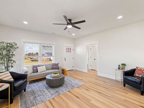 Located in Prominence Fields, just half a mile from Edgewood schools, this brand new bungalow home by Valu-built Construction is 100% done and move-in ready. Situated on a corner lot, this home features 3 bedrooms, 2 full bathrooms, an open concept kitchen, living, and dining area, and a side load garage. The kitchen features soft-close shaker cabinets, quartz countertops, subway tile backsplash, and stainless steel Whirlpool appliances. Interior finishes include Craftsman-style trim, three-panel Craftsman doors, and black hardware, lighting, and plumbing fixtures. LVP flooring covers the main areas with tile in the bathrooms and laundry room. Outside, the home features white vinyl siding with a stone accent for added curb appeal. Builder warranty is included.