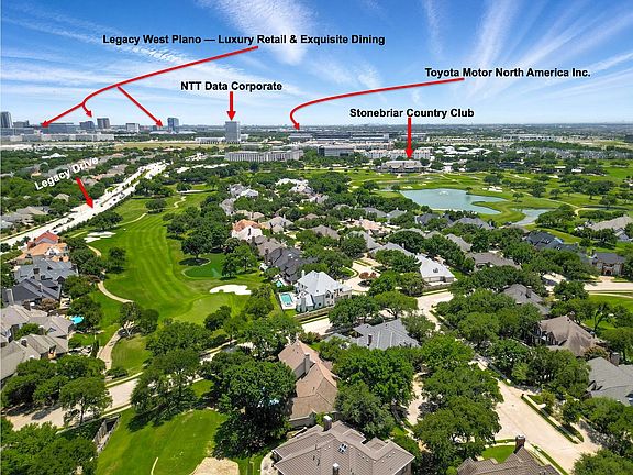 A+ PRIME LOCATION – Welcome to 5017 Southern Hills Drive, a distinguished 4,910 sq ft estate nestled within the prestigious guard-gated community of Stonebriar Village. Overlooking the 12th fairway of the world-renowned Stonebriar Golf Course, this 4-bedroom, 4.5-bath residence embodies a rare blend of timeless elegance, elevated privacy, and refined country club living. Positioned along one of the most coveted stretches of the course, the home offers serene golf course views and a lifestyle defined by sophistication in one of Frisco’s most sought-after enclaves. This stately residence is a masterclass in architectural refinement, with panoramic views of the manicured 12th fairway serving as a serene backdrop to everyday living. A grand foyer with soaring ceilings and expansive windows floods the interior with natural light, while rich custom millwork and designer finishes enhance every space. The chef’s kitchen is outfitted with Viking appliances, quartz countertops, and a built-in coffee station, seamlessly flowing into a spacious living area ideal for both entertaining and everyday comfort. Additional features include an executive office, private 850-bottle wine cellar, luxe primary suite, ensuite guest rooms, and an upper-level game room. Outdoors, enjoy resort-style living with a sparkling pool, spa, and covered patio overlooking the fairway. Located minutes from The Shops at Starwood, The Shops at Legacy, Legacy West, The Mix, Grandscape, and DFW Airport, with top-tier shopping, dining, and schools nearby. Schedule your private tour today. The home has been thoughtfully updated with brand-new carpeting throughout the upstairs, as well as in the primary suite and its expansive walk-in closet. Recent upgrades include a newer water heater (approximately 3–4 years old), brand-new HVAC systems for enhanced energy efficiency and year-round comfort, and a new high-performance dishwasher—offering modern convenience with peace of mind. Home is Virtually staged!