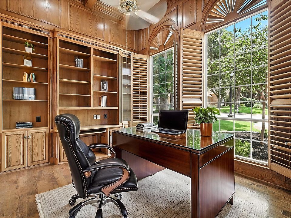 Sparkling poolDesigner finishesSerene golf course viewsExecutive officeExpansive windowsResort-style livingQuartz countertops