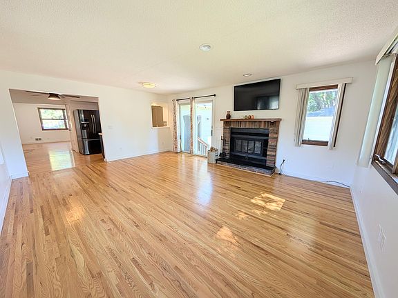 The main level features hardwood floors, an open living room with a wood-burning fireplace, and an adjoining informal dining area. The kitchen provides efficient workspace and flows easily for daily living. Three bedrooms are conveniently located on the main level along with a full bath.