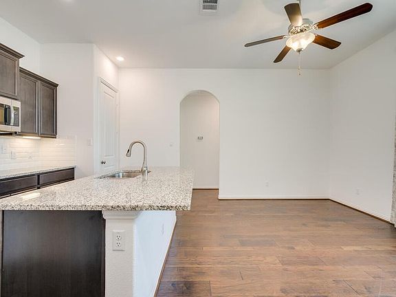 Sweet home in excellent condition! Very unique floor plan, a complete separate suite inside the house. It's like having a home within the home! Single story home, 4 bedrooms and 3 full bathrooms in total. As you enter the front door, there is a whole suite to the right with it's own entrance, it's a one bedroom one bathroom with a living room and kitchenette, makes a perfect home office. The main house is 3 bedrooms and 2 full bathrooms, with a formal dining room, large family room w/Gas fireplace, spacious breakfast area, and a large kitchen featuring stainless steel appliances, double oven, island with pendant lights, tons of cabinet space, and a corner pantry. Primary bedroom has his/hers closets, separate walk-in shower, tub, and double vanity. Amazing open feeling, the ceiling is 10 feet high, gorgeous hardwood floors throughout all the common areas. Large covered patio with a gas drop, and the perfect size backyard. Enjoy the highly desirable community of Teravista with some of the best amenities in the extended Austin area, multiple pools, tennis courts, trails, and more. Tons of options for shopping and dining minutes away, and super easy access to IH 35