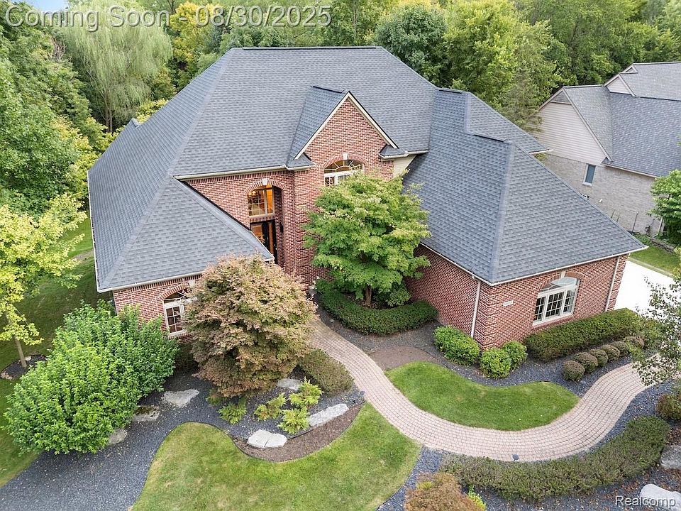 Tucked away in a peaceful wooded neighborhood in Canton, this stunning contemporary home blends comfort with thoughtful updates. Step inside the grand foyer where polished marble floors set the upscale tone and solid hardwood flooring stretches across the entire first level (updated 2021). A versatile front room offers the perfect spot for a sitting area or home office, while the formal dining room overlooks the yard. Vaulted living room is the heart of the home, anchored by a striking two-way fireplace. On the other side, the open kitchen invites gathering with its professional renovation in 2019 featuring cream soft-close cabinetry, quartz countertops, Bosch appliances, induction cooktop, a walk-in pantry, and a large L-shaped island with bar seating. A bay window brightens the breakfast nook, and sliding doors open to the expansive Trex deck with updated railings, ideal for indoor/outdoor living. The first-floor primary suite is a retreat of its own, with hardwood flooring, vaulted ceilings, walk-in closet, and a spa-like bath featuring a jetted tub, glass shower, and oversized vanity. Upstairs, three additional bedrooms share a full bath, while a loft at the top of the stairs provides flexible space for an office or lounge. Downstairs, the fully finished walk-out basement was designed for entertaining complete with second kitchen, full bath with spa shower, gym, and multiple flex rooms—including a cinema room with tiered seating. Sliding doors extend the living space out to the stone patio, surrounded by trees on three sides for an “up-north” feel, yet tucked into a quiet court with minimal traffic. Recent updates include a new roof (2021), furnace and AC (2022), hot water tank (2024), fresh cement driveway, plus a 12-zone sprinkler system and wiring for an external backup generator. Conveniently located in the far northwest corner of Canton just a quick commute to Downtown Plymouth or Plymouth Orchards! Schedule your showing today!