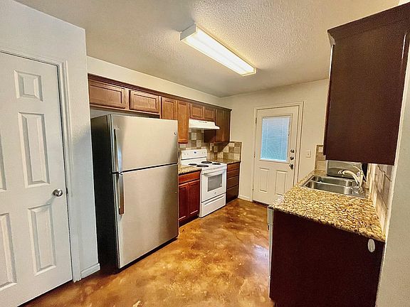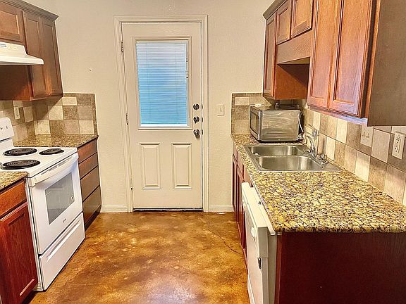 Gorgeous Unit B, 3-bedroom, 2-bathroom duplex, offering 1,308 sq. ft. of modern living space. The open-concept design with sleek concrete floors makes for an airy and inviting feel. Cook and entertain with ease in the stylish kitchen, complete with granite countertops and a large island. Enjoy extra perks like window blinds, a refrigerator, and an extended covered front porch, perfect for relaxing. Step outside to your fenced backyard for outdoor activities and privacy. With a 1-car garage and extended driveway, there's plenty of room for parking. Conveniently located near great restaurants, shopping, and hospitals. This home is ready for move-in!