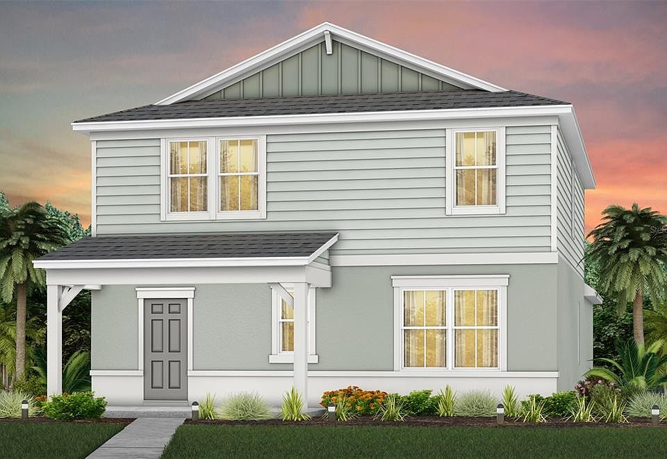 Under Construction. Explore The Landings at Live Oak Lake, a new single-family home community blending city charm with a distinct identity, all without a CDD. Situated between downtown St. Cloud and Lake Nona, it offers private amenities such as a pool & cabana, playground, trails, and playfield amidst serene ponds and conservation homesites. Welcome to the luxurious Mabel bungalow by Pulte, a stunning new construction that perfectly blends modern design with everyday convenience. This Coastal-inspired home offers 4 bedrooms, 3 bathrooms, a loft, a covered lanai, and a 2-car rear-load garage. Upon entry, you'll be greeted by a grand foyer with ample storage, including two closets, leading into an open-concept living space. A private hallway off the foyer offers a guest bedroom and full bath, creating an ideal space for visitors. The heart of the home unfolds into a spacious kitchen, café, and gathering room, with seamless access to the covered lanai—ideal for indoor-outdoor living. The chef’s kitchen is a true standout, featuring a large center island, corner walk-in pantry, and Whirlpool stainless steel appliances, including a vented microwave and a refrigerator. Elegant Elkins Stone Gray cabinetry, a decorative tile backsplash, and Lagoon quartz countertops complete the space, ensuring both style and functionality. Upstairs, the luxurious owner’s suite provides the perfect retreat, tucked at the rear of the home for ultimate privacy. The spa-inspired en suite bathroom boasts a glass-enclosed shower, a quartz-topped dual vanity, and a spacious walk-in closet, creating a sanctuary of relaxation. Two additional bedrooms, sharing their own dedicated hallway, offer added privacy and comfort, while a full bathroom serves the space. The second floor also includes two linen closets, a laundry room, and a large loft area—ideal for flexible living. Thoughtful luxury touches throughout the home include porcelain tile flooring on the first floor (except the first-floor bedroom, which features plush, stain-resistant Shaw brand carpeting), carpeting on the staircase and second-floor bedrooms, and pre-wiring for pendant lighting. Smart technology features like a smart thermostat, smart doorbell, and additional LED downlights ensure this home is as advanced as it is beautiful. For added convenience from day one, this home comes complete with 2" faux wood blinds, as well as a washer and dryer! This exquisite home offers the ultimate in luxury, convenience, and modern design—everything you need to live and relax in style.